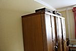 - Div. Bilder aus der Museumswohnung: Badezimmer mit alter Badewanne und Beuler; Schlafzimmer mit altem Kleiderschrank, Frisierkommode mit dem damals typischen, dreiteiligen Klappspiegel; Küche mit Möbeln.
